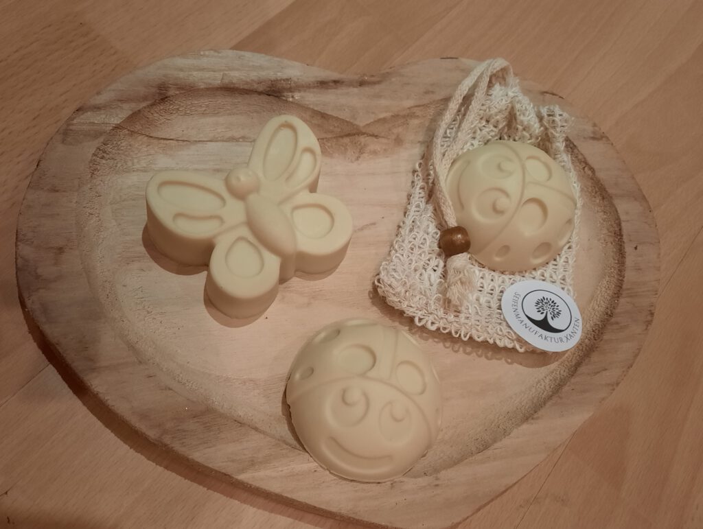 Cocos Nucifera Oil (Kokosöl), Aqua (Wasser), Olea Europaea Fruit Oil (Olivenöl), Persea Gratissima Oil (Avocadoöl), Carthamus Tinctorius Seed Oil (Färberdistelöl), Sodium Hydroxide (NaOH), Ricinus Communis Seed Oil (Rizinusöl), Butyrospermum Parkii Butter (Sheabutter), Zea Mays Starch (Maisstärke), Citric acid (Zitronensäure)